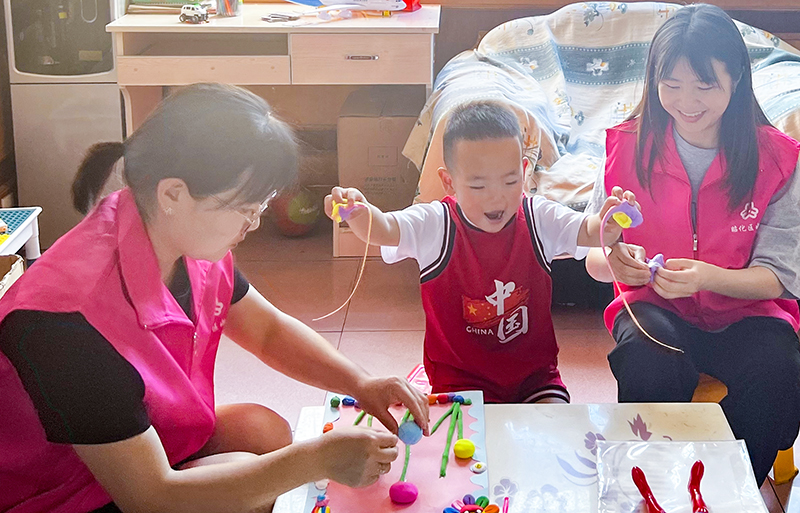 区妇联同志与吴雪花亲属进行了亲切交流,详细了解了其家庭孩子上学、老人照顾、自我防护、生活中还有什么困难需要帮助等情况,并为小朋友送去六一礼物、为家庭送上端午节爱心包。随后,巾帼志愿者们陪吴雪花的孩子一起讲故事、玩玩具,并在他的邀请下一起动手制作了一份礼物,迎接他的妈妈平安归来。