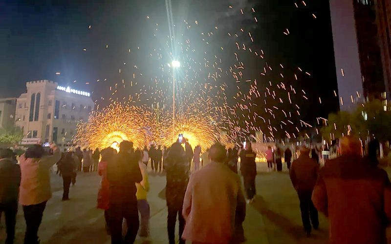 “今年元宵太热闹咯!大家聚在一起唱歌跳舞,看打铁花表演,简直年味儿十足。”家住元坝镇的居民孙瑞雪说完,便加入到载歌载舞的队伍中去了。