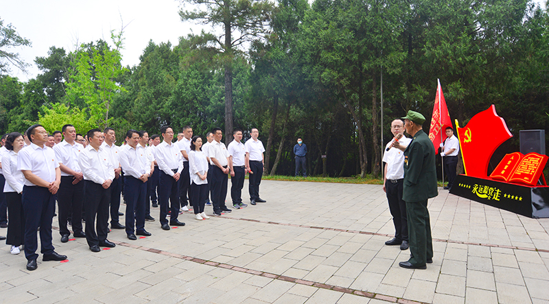 用好红色资源生动教材进行现场体验教学是这次读书班的鲜明特色。当天上午,来到太公镇红军树遗址前,全体学员聆听了革命历史故事。走进巍巍红军山,学员们在革命烈士纪念碑前脱帽默哀,敬献花篮鲜花,瞻仰纪念碑,聆听抗美援朝出国作战参战老兵、“感动昭化十大人物”李化武同志讲红色故事,并在刘自强的带领下重温了入党誓词。在虎跳镇原渡江战役猫儿跳渡口、张明秀事迹陈列馆等地,学员们深情追忆先辈们在革命路上的峥嵘岁月,深刻体悟我们党同人民群众生死相依、患难与共、艰苦奋斗的宝贵精神。